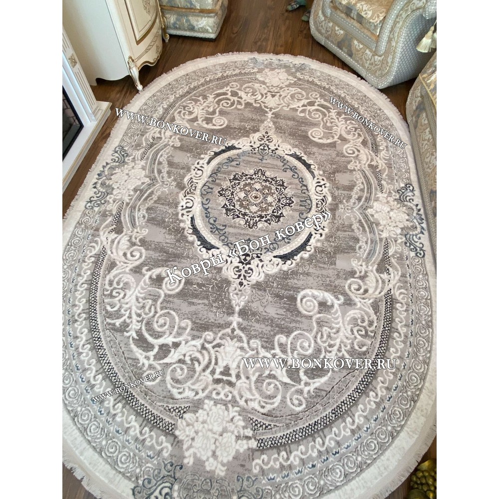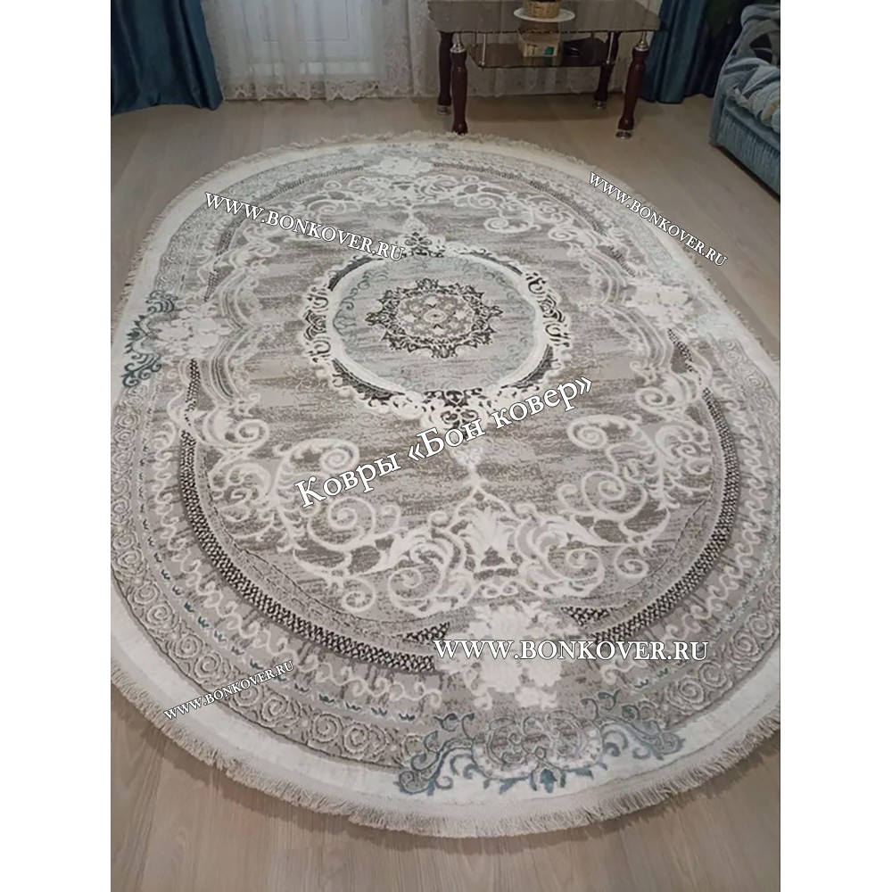 Изящный Овальный Ковер Для Гостиной Медальон Белый с Синим Дизайн 29944 наполняет интерьер жилого пространства теплом и уютом, гармонично сочетает в себе изящество и красоту. Он создан из экологически чистого сырья, прочный и долговечный.